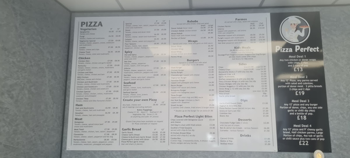 The Pizza Perfect Menu at 9 Brinkburn Rd, Darlington, offers a satisfying mix of familiarity and bold flavour that will appeal to pizza lovers across the board. This independent spot might not be a high-street chain, but its menu rivals the best in terms of variety, value, and taste.